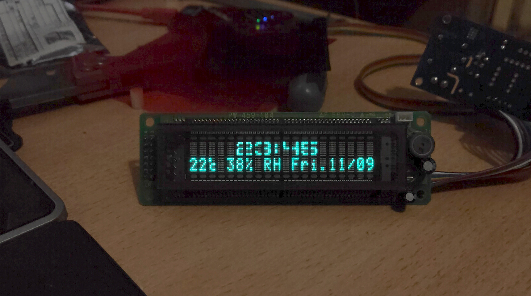 I had a Noritake VFD module lying around, and decided to make a clock out of it.