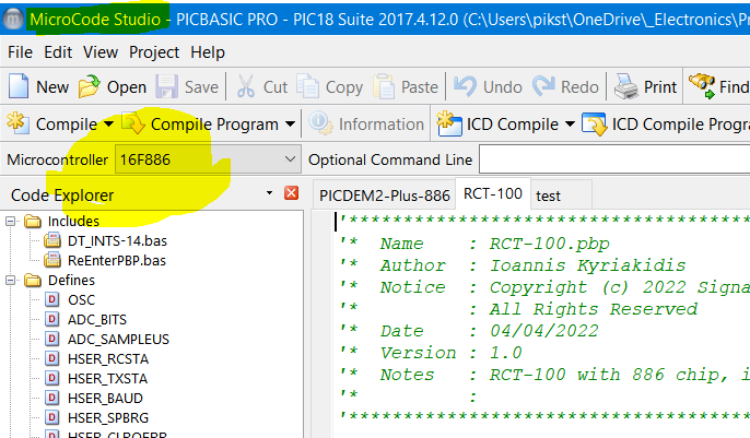 but the only thing I need is to define the pic 16f886 in the pbp.