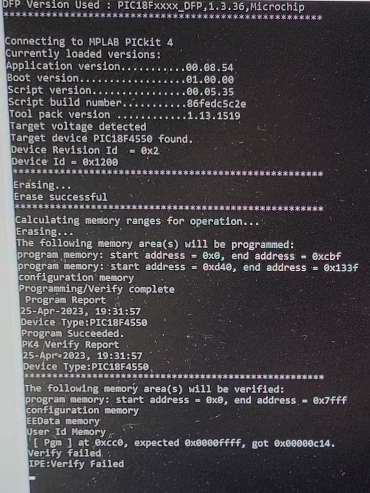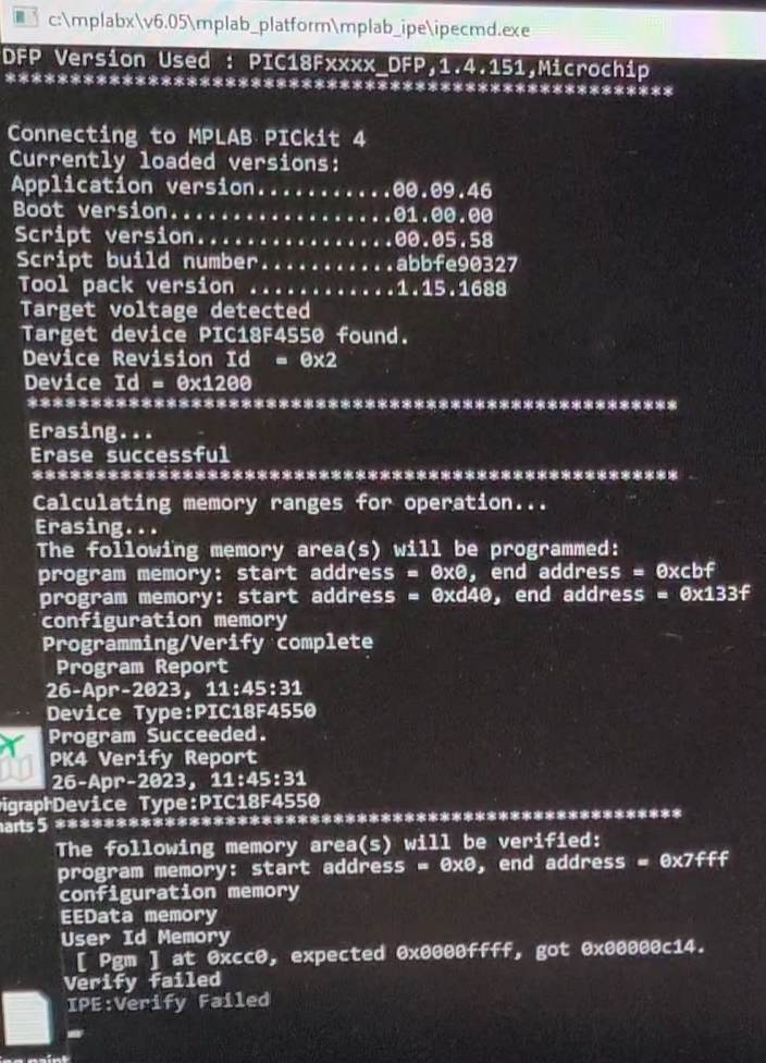 Re: 18F4550 programming failed using PICkit4 while verifying "User ID memory"