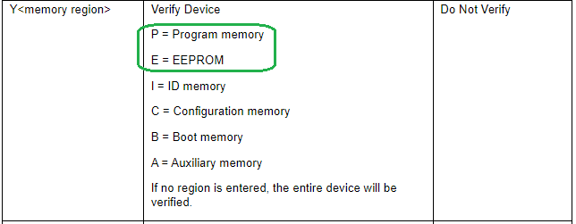 YP = Verify Program memory (U2 verifies Code, Calibration, Data, User ID and Configuration)