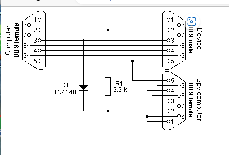 I know I can do this with another RS232 and a couple of diodes and resistors but prefer to not use an extra serial port. A simple monitoring window is better.