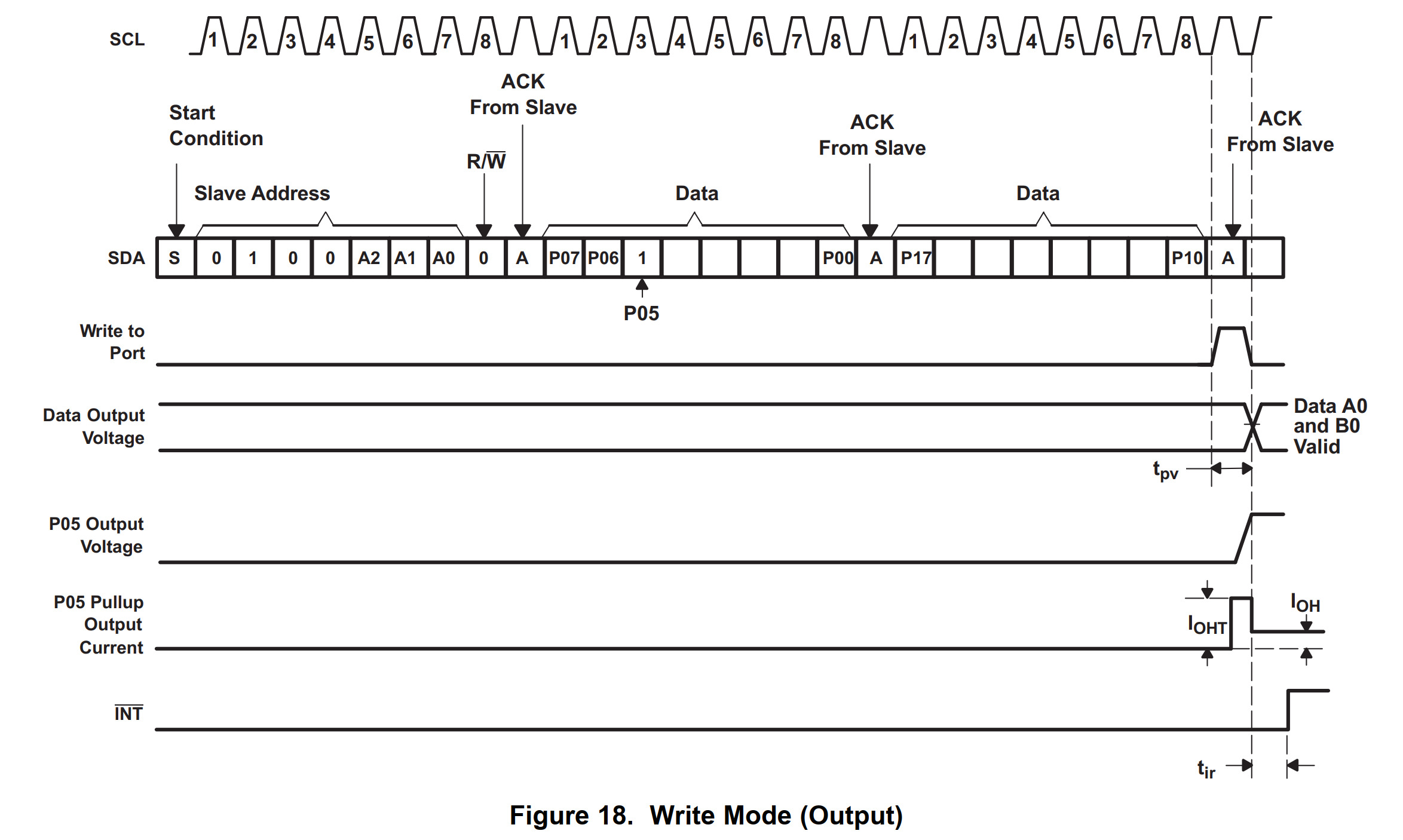 The all 3 addr pins are connected to GND, which, according to the manual, should give write address of 64. However, it has zero response to my code. Wiring is correct and ports are configured properly. Anyways, here's the complete code - I'm just trying to enable and disable all outputs at same time each 2 seconds.