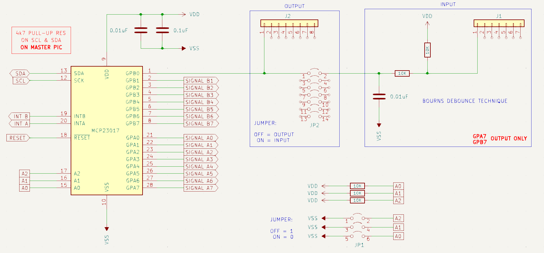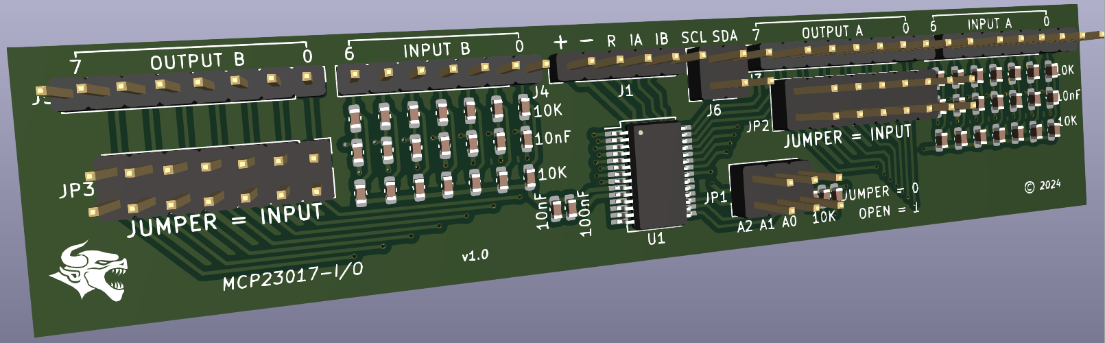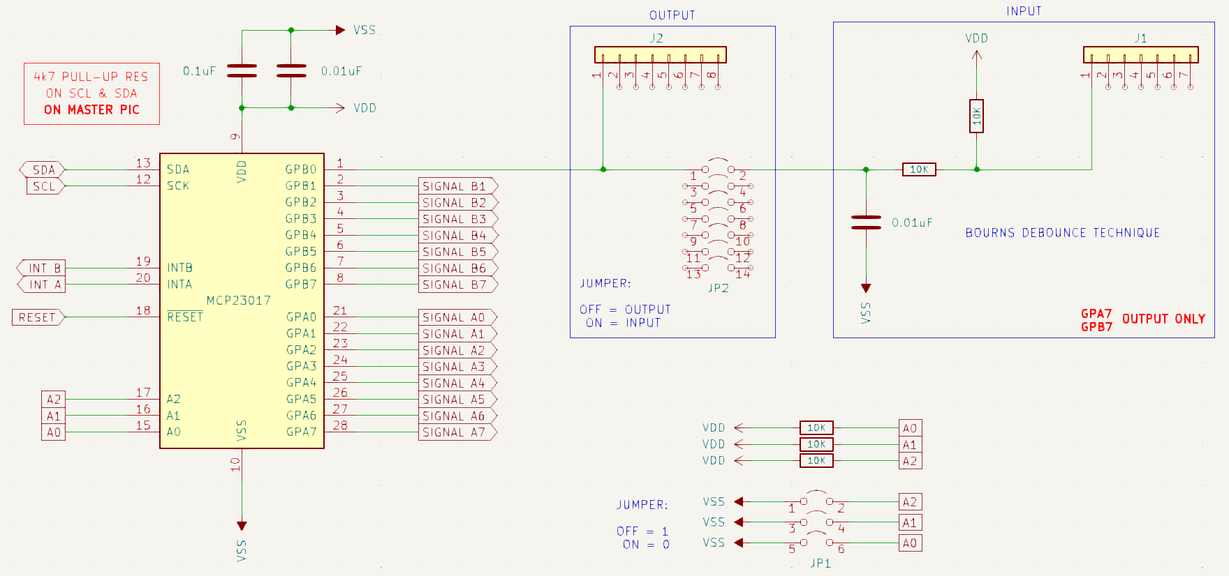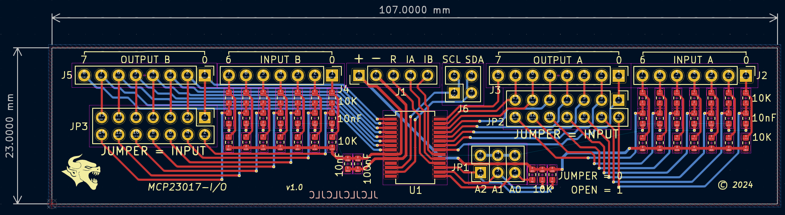 This is my offer for the smallest design on the MCP23017 I/O expander in bi-directional mode: