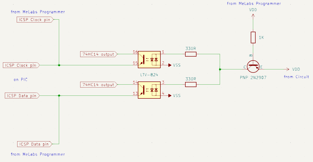 Does this look "safe" to use an opto-coupler to be able to reuse ICSP Clock & Data pins?