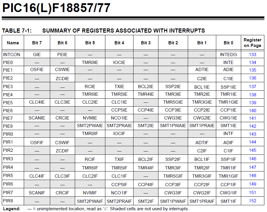 Registers associated with Interrupts are in Table 7-1 on p. 153: