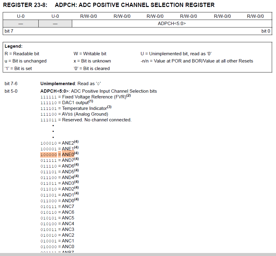 ADPCH = %00100000 ' ADC POSITIVE CHANNEL SELECTION REGISTER