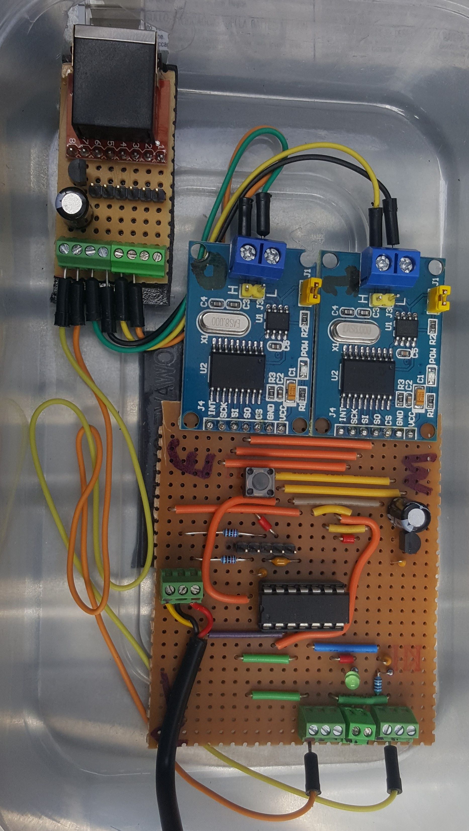 It uses a 18F26K80 at 64mhz and 3 el-cheapo aliexpress $5 SPI CAN boards.