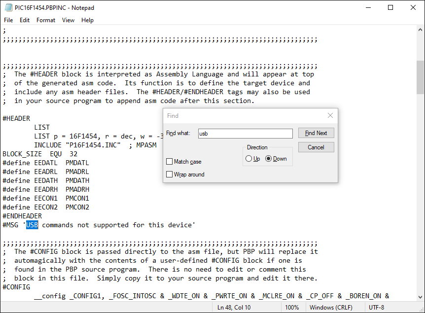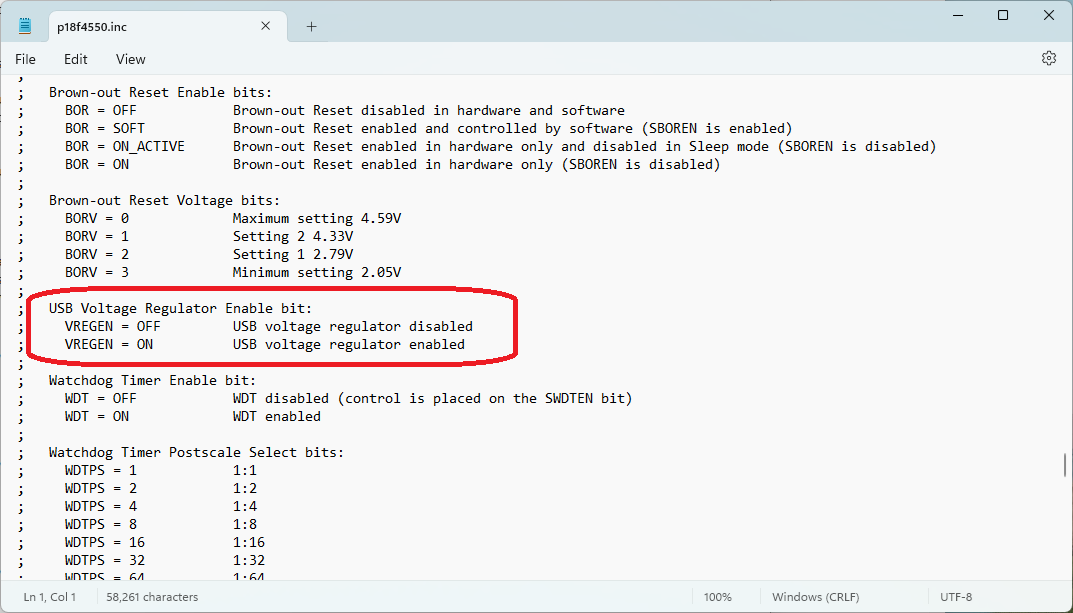 Also, PBP doesn't let you enable the PIC16F1454 USB internal voltage regulator. Below is the setting for the 18F4550.