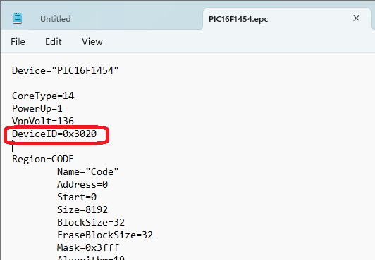 Hmm, I'm trying to make this chip work with just an LED and the chip is not cooperating. I'm getting a "Does not match target device" error. When I try to get the target information, I get a different target id than the one in the INC file. If I change the INC file id to 3FFF, it doesn't work either.