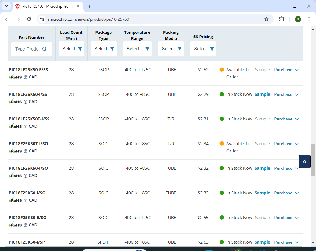 The good news is that the 18F25K50 isn't that expensive. I'll order some and I'll give it a try.