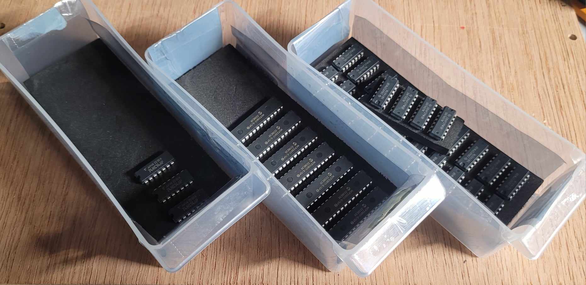 Ok, so basically any IC gets a mylar liner, and sits on ESD foam (depending on pin lengths - SMDs just sits on thin 3mm foam mainly cause I have it on hand now).