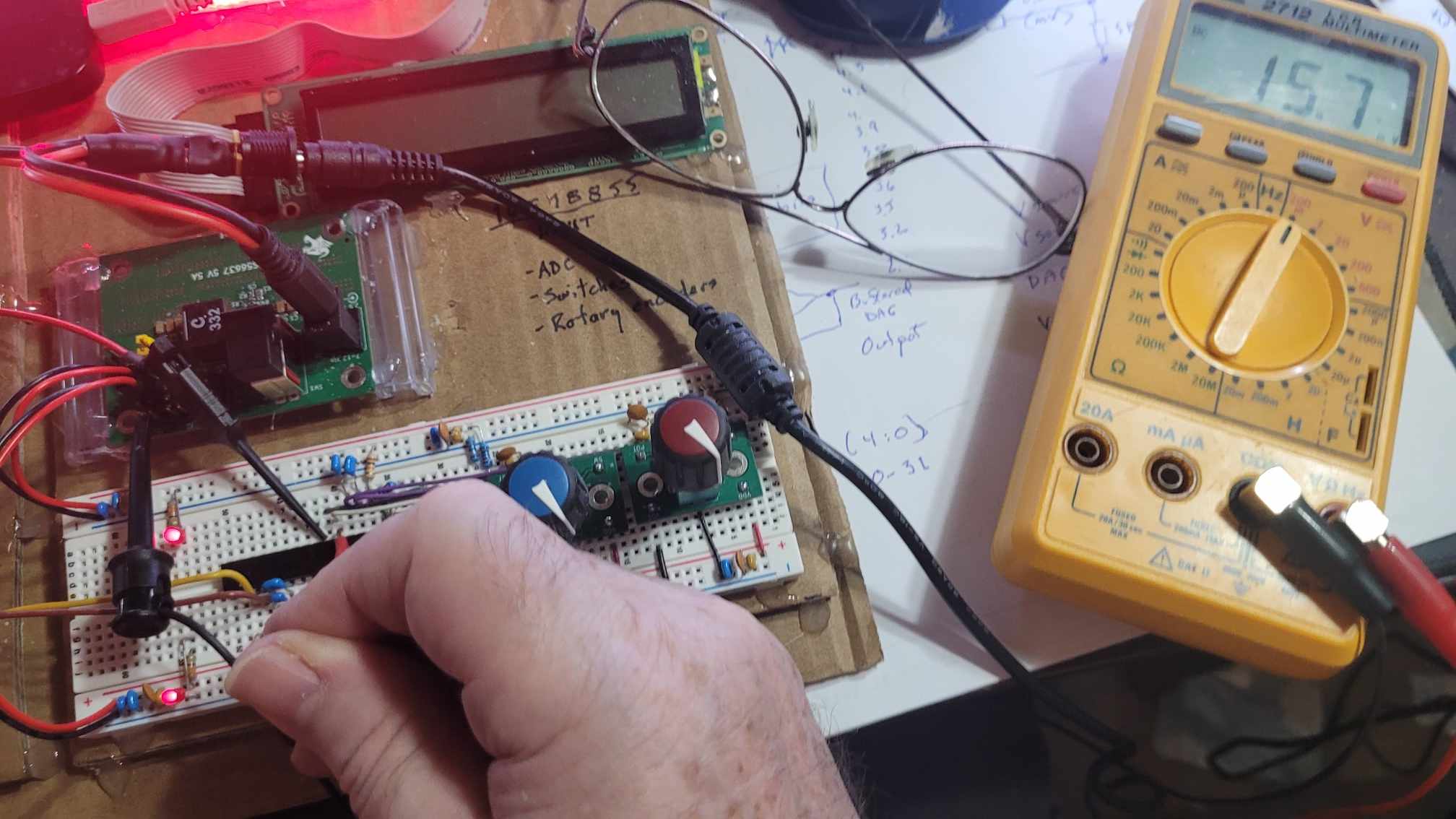 Here's a view of the breadboard. I removed a 2nd pot with switch, and left just the essentials.