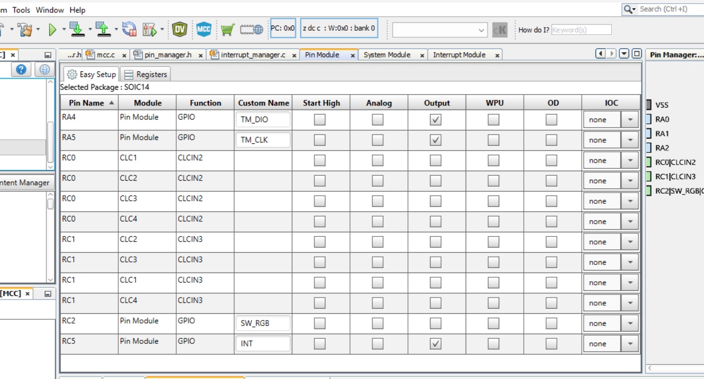 if you use mcc its perfectly clear how each pin is set and self documenting