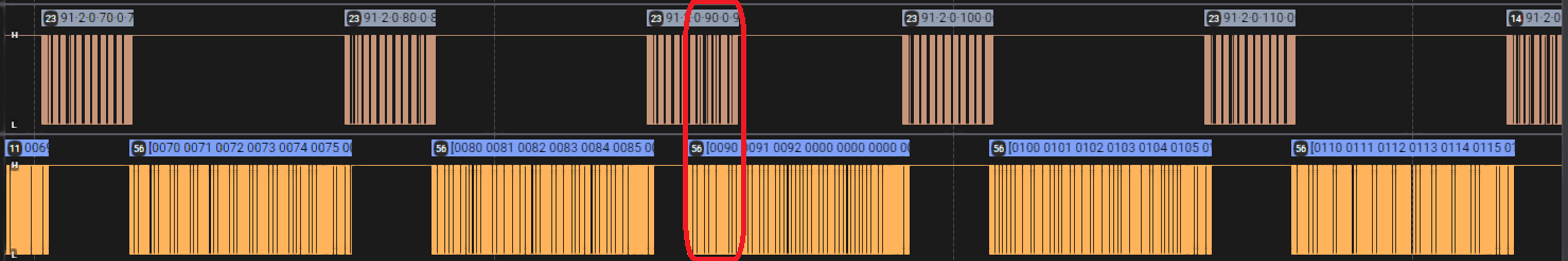 Saleae probe timings from before Load Array in TX to after Lcdout in RX
