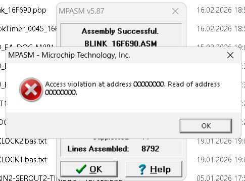 I get 5 "Access violation" errror windows I can clear and at final, everything seems okay = every thing works (I get the HEX file I can send to the PIC).