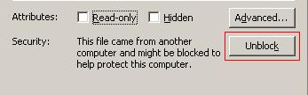 Right click on the file and hit properties and click unblock, ok. This should let PBPW access it without any trouble.