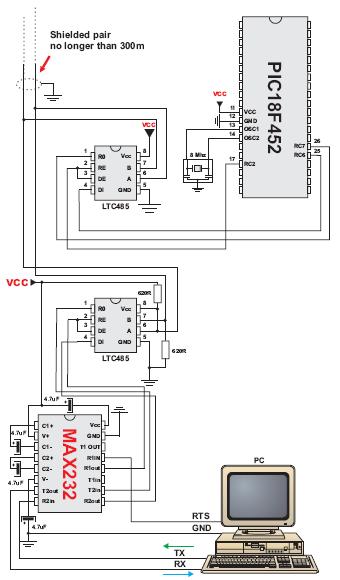 Hi, I need to connect my PC to some of my circuits that use RS485. I was going to have a converter built into one of the circuits. It looks like it should be as simple as connecting a MAX232 chip to a MAX485 chip. That should be fine for 1way communications but if i want it 2 way then i need the serial port to be able to switch between RS485 driver and receiver. Would i be able to use those extra pins on the serial port for this? Which ones can i actually use? Im thinking about CTS, DSR etc. Im not sure which ones are inputs and which are outputs though. Do i need any other components between these pins and the MAX485's RE and DE pins? Maybe resistors?