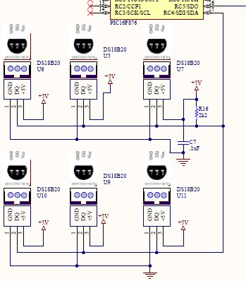 The PIC's job is to address each individual sensor to read its value. That is how the One-Wire bus works. Each sensor has an address and will only respond to it's address.