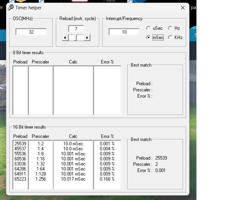 65535 - (((( MHz / Prescaler ) / 4 ) x 10000 ) - 8 )