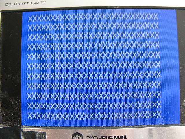 Wow! This is really so great! Thank you! I will try the above code just as soon as possible. I loved your screen full of "X's"! If I understand things correctly the text is as small as it can be? FYI, I work at Fox Television so a high quality professional monitor is not difficult to bring home. Did you like how I built the board with the chip? This display is something I have been dreaming about for several years now and it is so wonderful to finally see some light at the end of the tunnel! I also believe the research and development is a major contribution for all others!