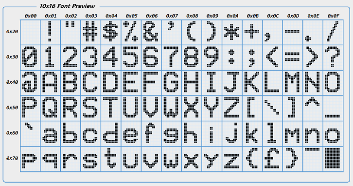 this has a 14x10 font for two char 0,1 ie 2 rows 10 columns