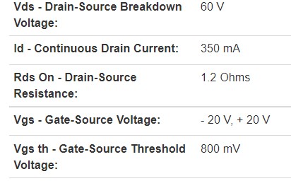 2N7000 specs are admirably suitable for low voltage / low coil current relays