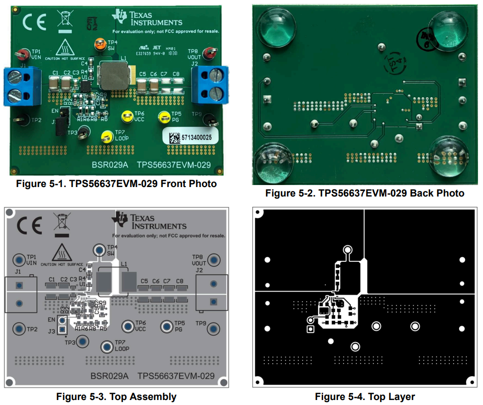 I couldn't find any mention of copper thickness in the datasheet. No mention in the Evaluation Board for the TPS56637, but it does have a much nicer layout with A LOT MORE cooling holes and a wider area.