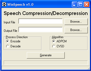I had not seen this before. I have not played the files from a PIC yet, but it sounds interesting as well. This C code :( uses a "simplified Adaptive Differential Pulse Code Modulation (ADPCM) algorithm". The files look slightly larger than the Roman Black files, but not by much, comparing to the numbers files sizes. The source code also has an executable file called winspeech.exe which encodes wave files.