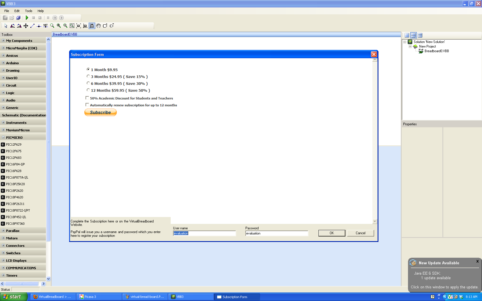 "http://www.virtualbreadboard.com free, nice graphics, some bugs, and some rebooting reported