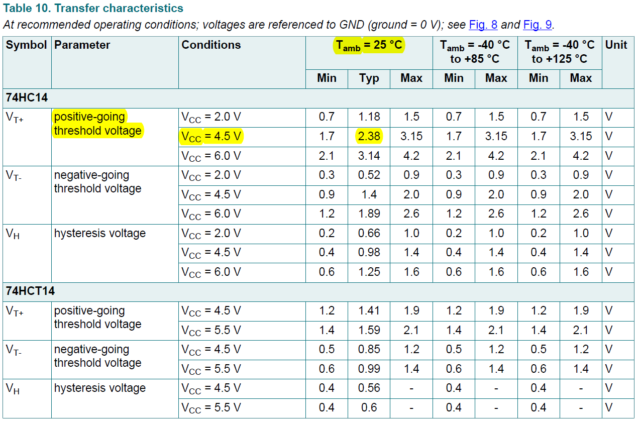 And this is the specs for the 74HC14 that I'm using: