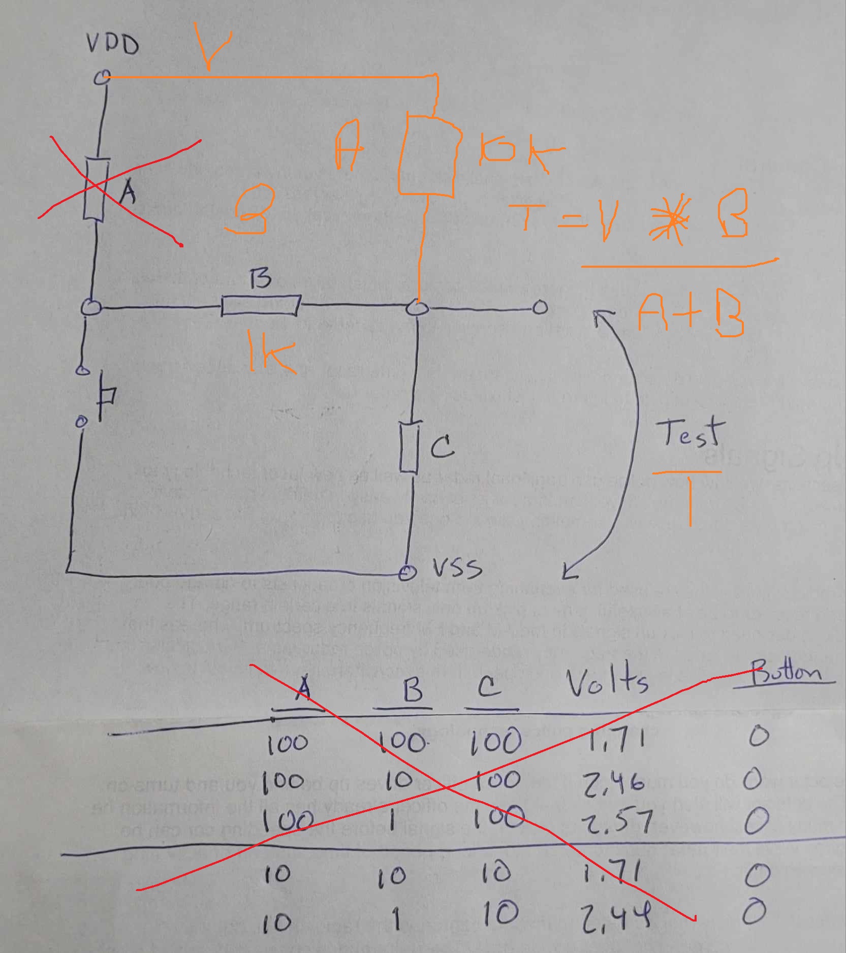 you sketch is incorrect , with button pressed v test == 0.45 v