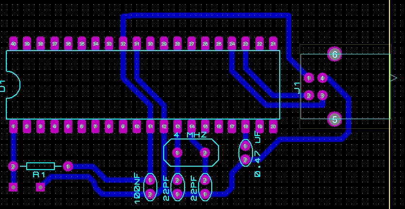 this is my scheme. i tried it using 20MHZ and 15pF caps. what is wrong with it?