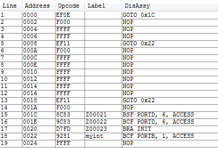 Address for int are 8 and 24, and GOTO takes 2 program word so, reset org should be 4.