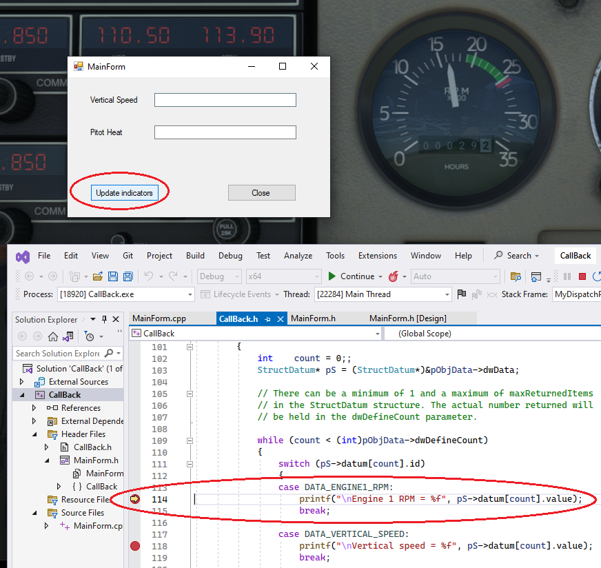 That was using a utility to get to Lvars, but I can't use it for all my objectives. It doesn't look like much, but I had to get familiar with Visual Studio 2022, learn C++ and get familiar with SimConnect.