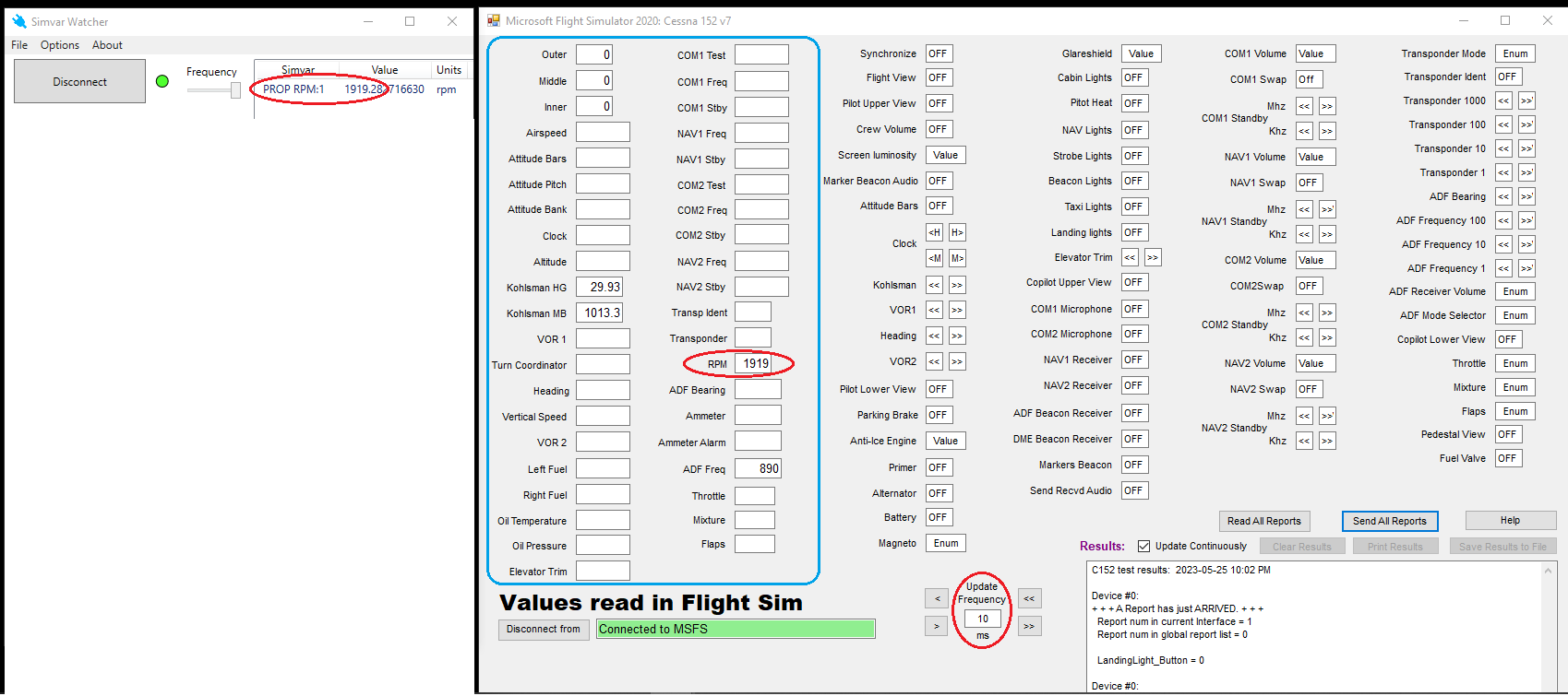 I spent the day fleshing out the Form with all the variables to be Read from Flight Sim on the left, and all the controls to be sent up from the PIC on the right. I run SimVar Watcher just to be sure I'm still on par on engine RPM reads during full throttle acceleration.