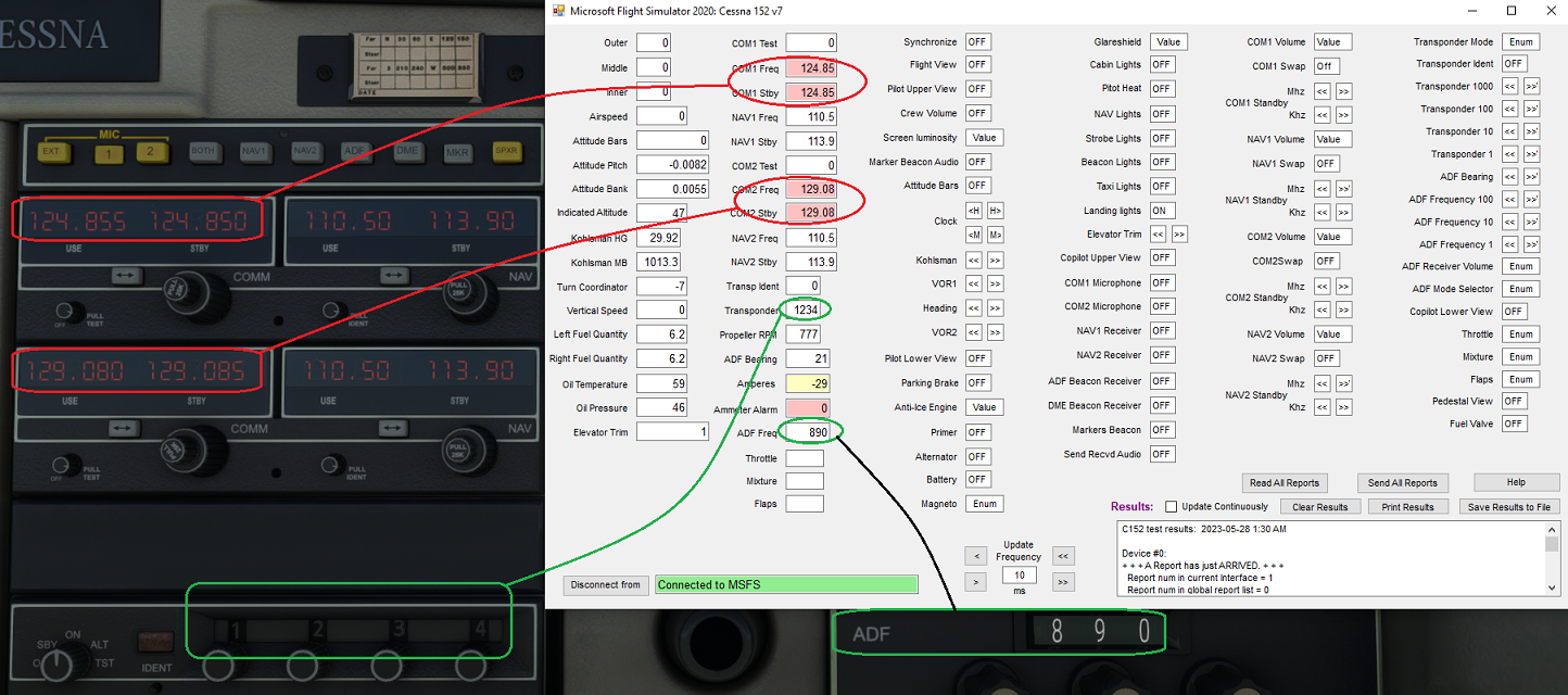 There's a design flaw in how the let us read COM frequencies; they drop that 3rd digit on the right. I have yet to see a way to "deduce" what it can be. So Plan B it is: I'm not gonna Read the Com frequencies, I'm gonna Tell Flight Sim what they are; case closed. :D