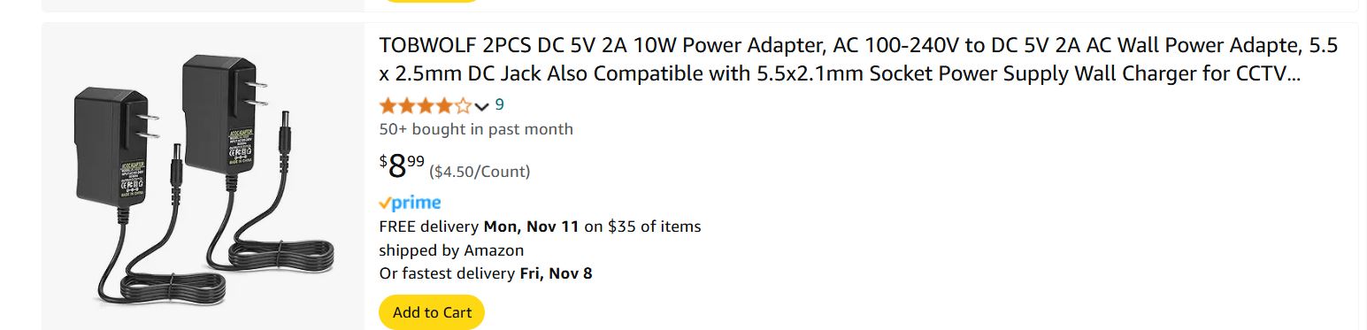 I have 9v 2a wall adapter coming in today, and a 7v 2a coming in tomorrow.