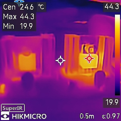 Also got a thermal imager to help identify hotspots. Looks like I fried 2 PICs with those 12V and 7V bursts (lesson learned).