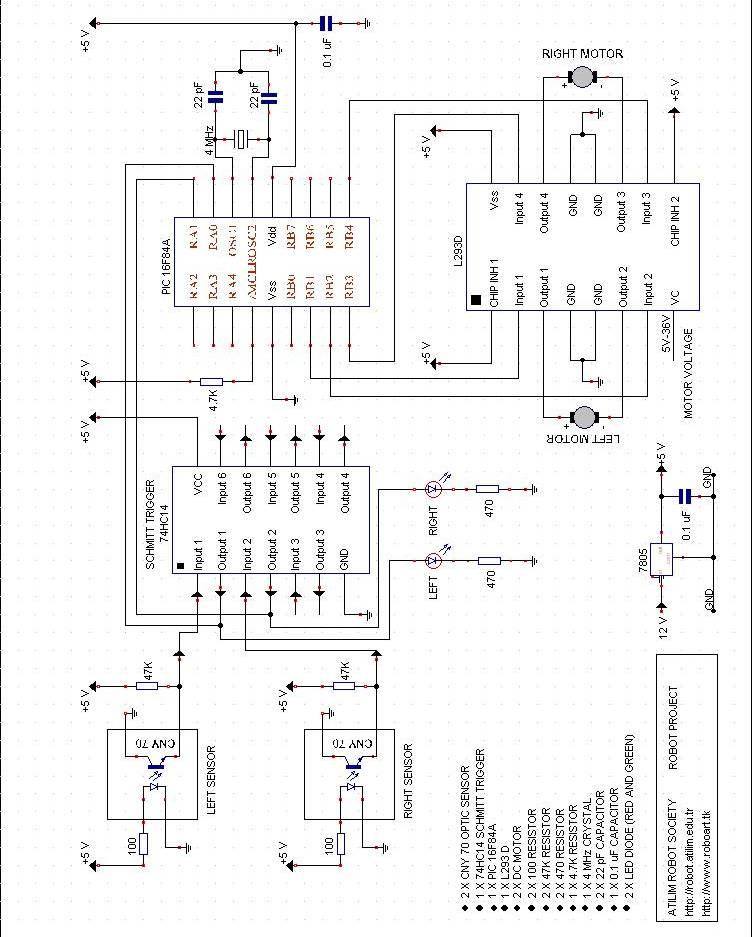I have been design the curcuit for my first line following robot i used the 16F84A (i shown the curcuit in the attachment for my line following robot)